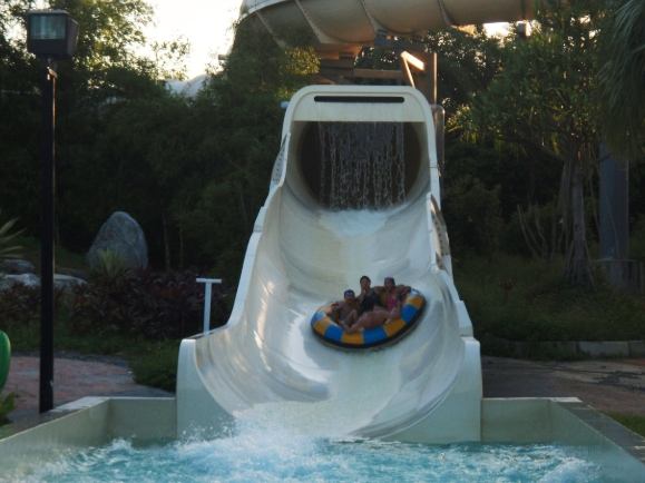 A: 大部分台灣的「水上樂園」都不強制戴泳帽! 這點跟游泳池不一樣。你可以放心地讓頭髮隨波飄揚(或亂翹)。不過,長頭髮的人建議還是把頭髮綁起來(馬尾或包包頭),玩滑水道才不會頭髮亂甩打結遮臉,也比較衛生。我自己是懶得綁,但玩完頭髮打結梳半天也是有點煩。所以看個人習慣囉!想戴泳帽當然也可以,沒人會攔你。