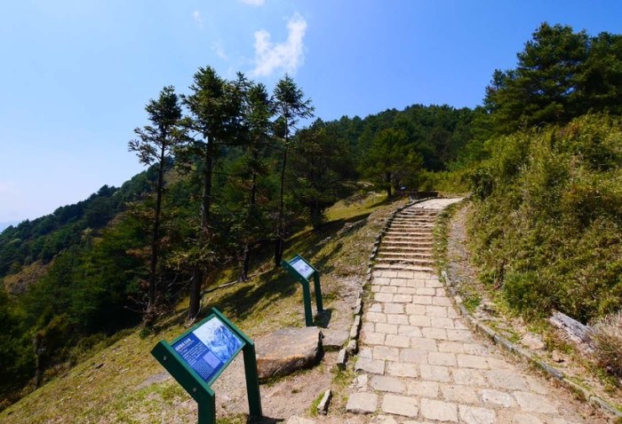 從上東埔停車場到真正的登山口「塔塔加鞍部」,還有一段約2.8公里的林道(孟祿亭附近就是大水窟山屋的岔路口,別走錯)。這段路禁止一般車輛進入(除了接駁車),你有兩個選擇: