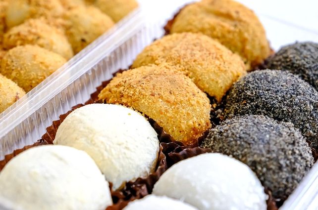 推薦理由:豐原的麻糬也是很有名的!老字號如「老雪花齋」(與崧雪花齋同源但分家)的麻糬皮薄Q軟不黏牙,包入細緻的紅豆、花生或芝麻內餡,甜度適中,是精緻伴手禮。若想體驗更「生猛」一點的口感,早上到豐原第一市場或周邊,常能看到現場手工捶打的麻糬攤。看著老闆反覆捶打糯米糰,再裹上滿滿的花生粉或芝麻粉,熱騰騰、軟綿綿又帶點嚼勁,香氣撲鼻,買一小盒邊走邊吃,超滿足!這種現做的熱麻糬體驗,是充滿活力的豐原必吃點心。